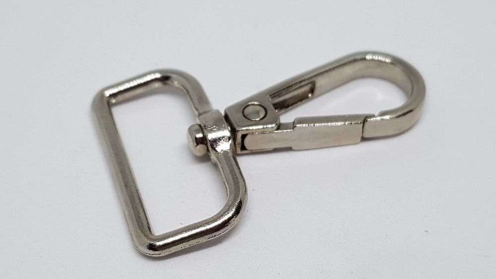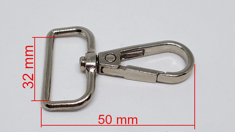 Mosquetón de mercería plateado de 32mm medida interior paso cinta.